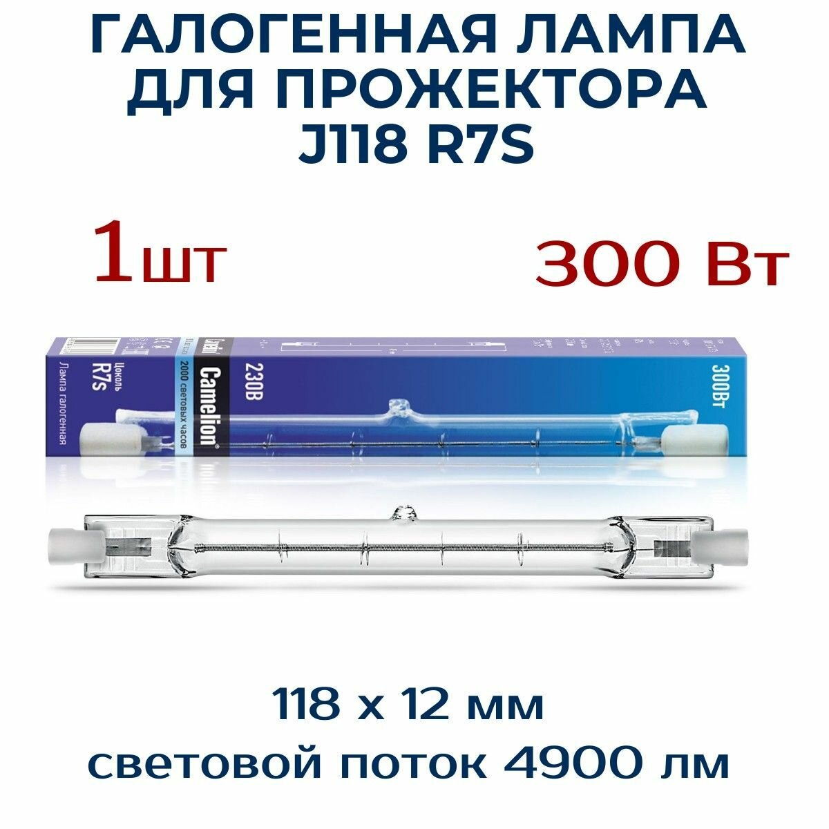 Лампа галогенная J118 300Вт линейная R7s 3000К 240В лин. 118мм, CAMELION 2936 (8 шт.)