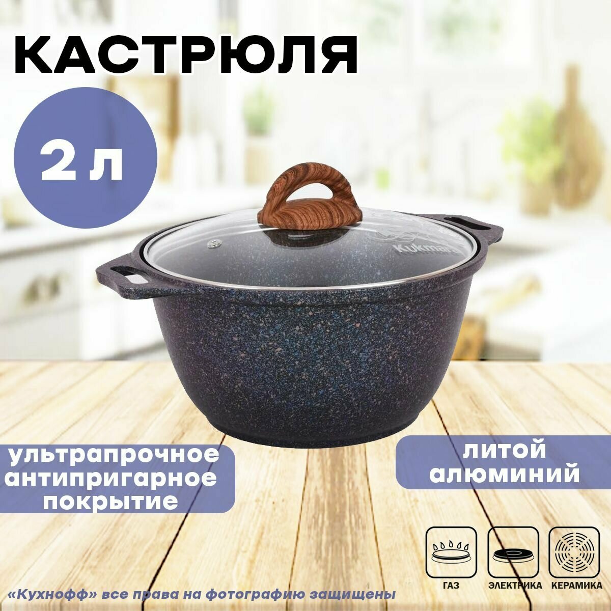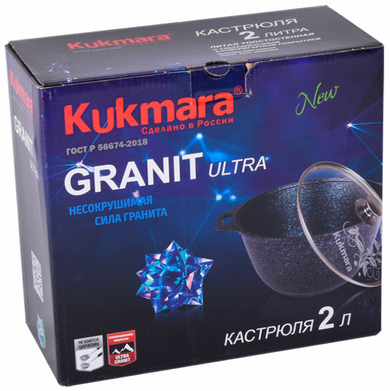 Кастрюля с крышкой Kukmara Granit ultra антипригарная, 2 л