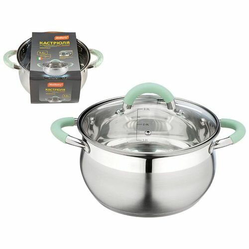 Mallony Кастрюля MENTOLO, 2,6 л, из нержавеющей стали с крышкой, ручки с силиконом