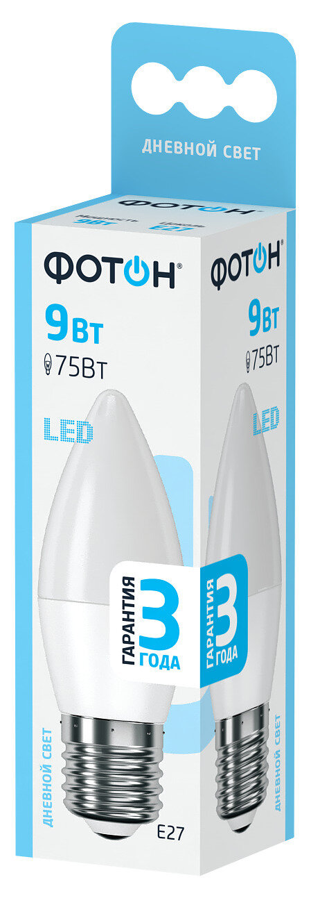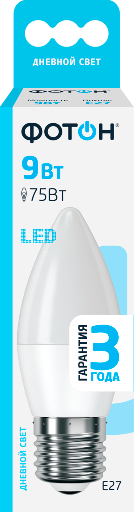 Лампа светодиодная фотон E27 9Вт, холодный свет, свеча