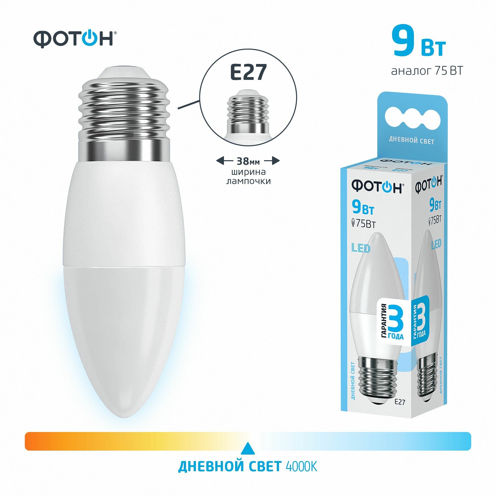 Светодиодная лампа Фотон B35 9Вт 4000K E27