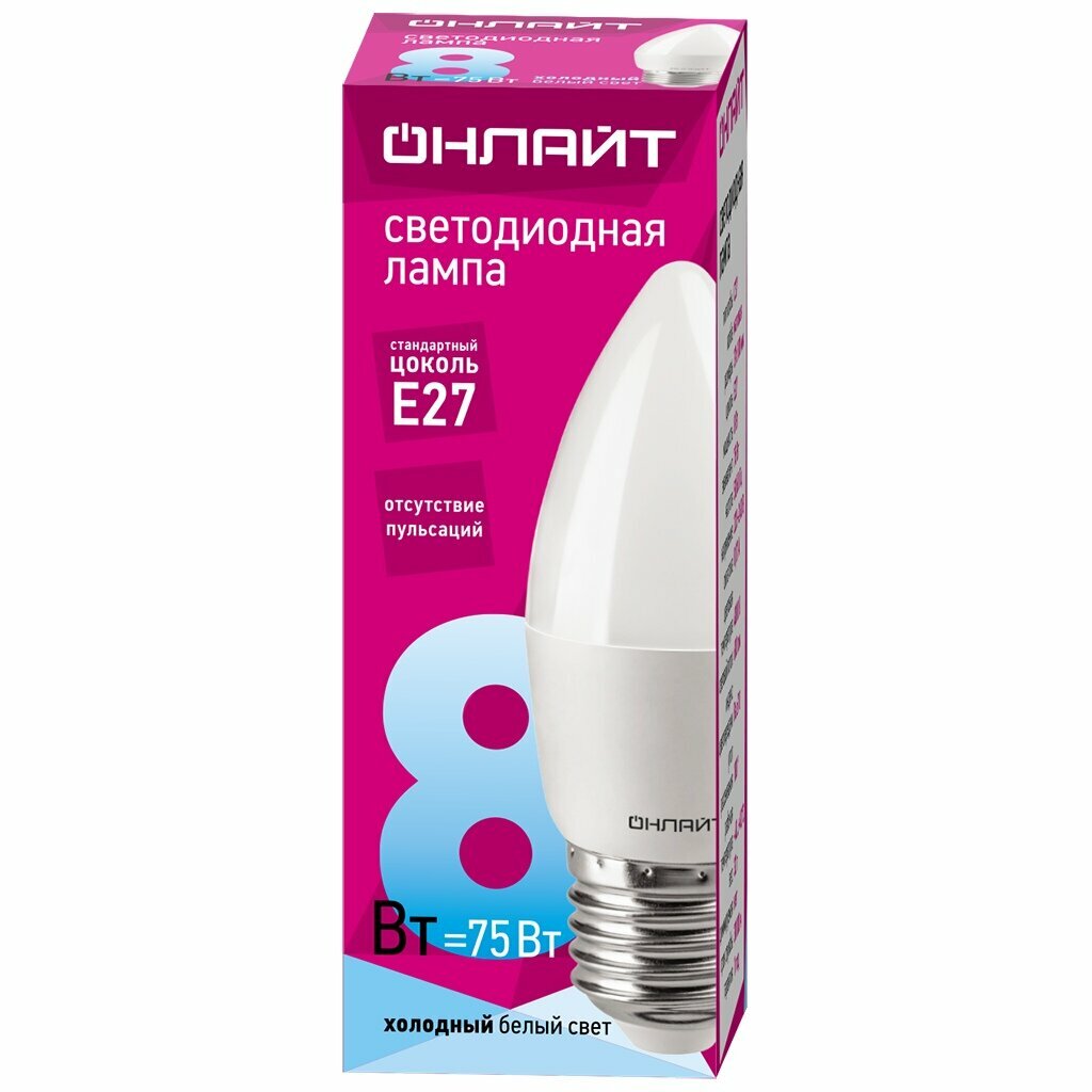 Светодиодная лампа Онлайт свеча 1хЕ27х8 Вт холодный свет