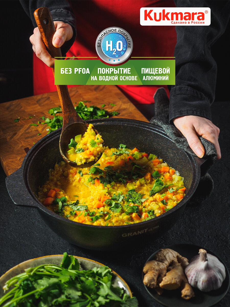 Кастрюля-жаровня с крышкой Kukmara Granit ultra антипригарная, 5 л
