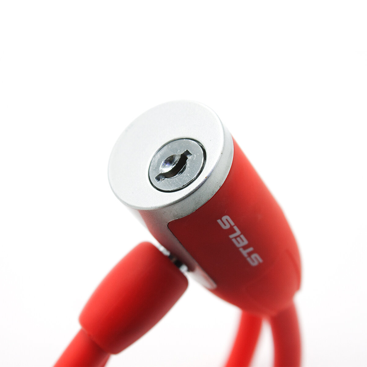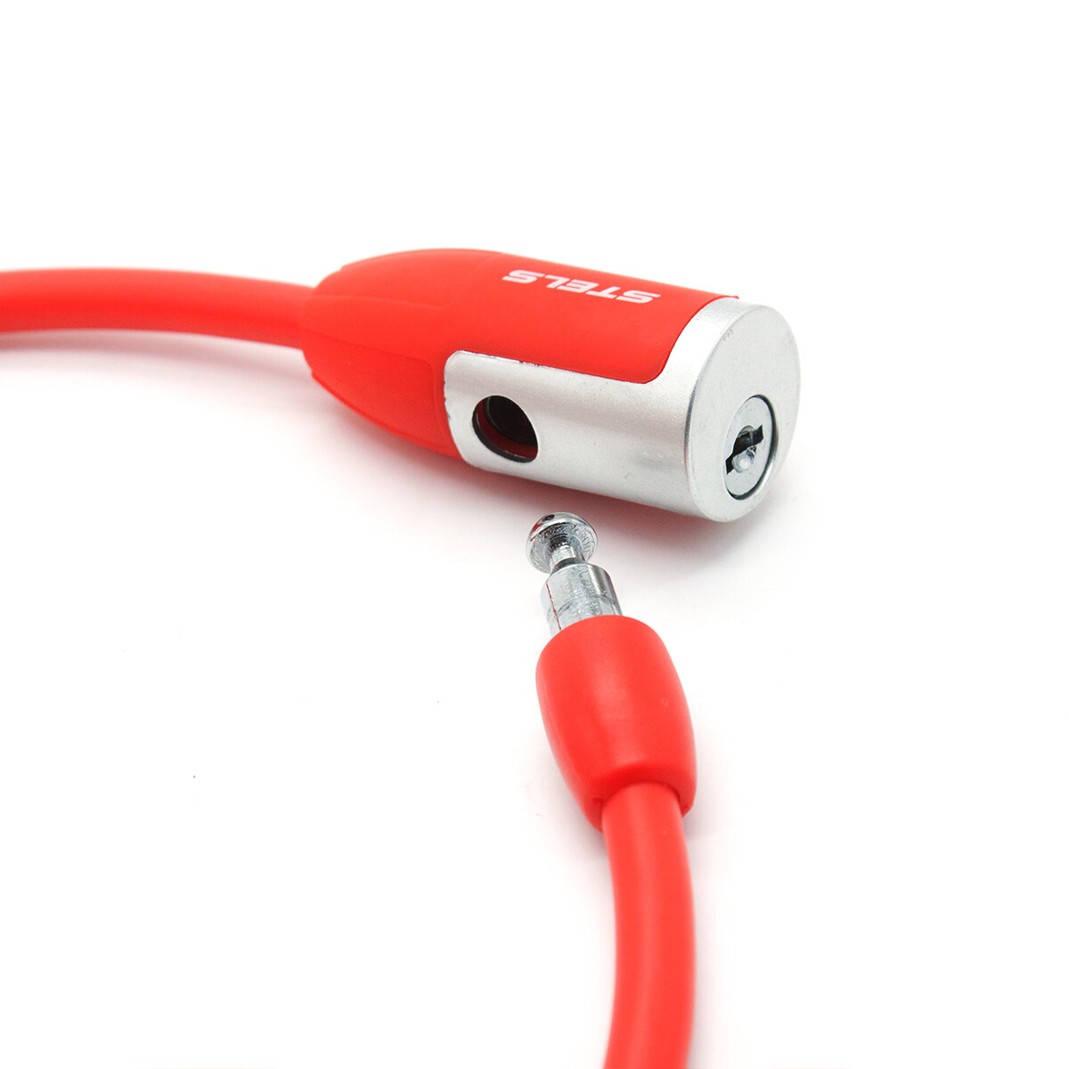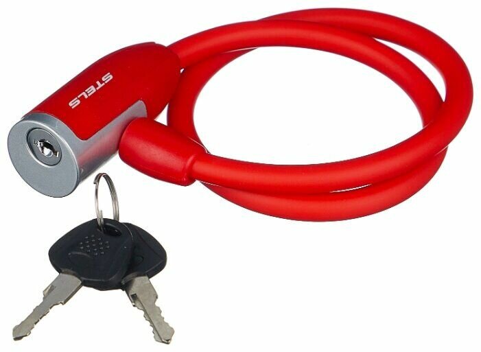 Замок велосипедный STELS 84356, 10x650 мм, стальной, на ключ, красный, арт. 540052