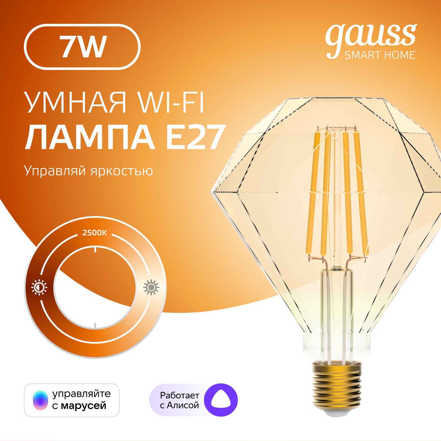 Купить Умная лампочка Wi-Fi SmartHome E27 7W управление голосом/смартфоном, диммируемая Gauss Filament Diamond