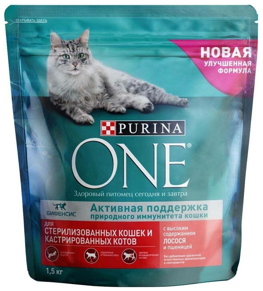 Корм c лососем 1,5 кг Purina One сухой, для стерилизованных кошек, 1 шт