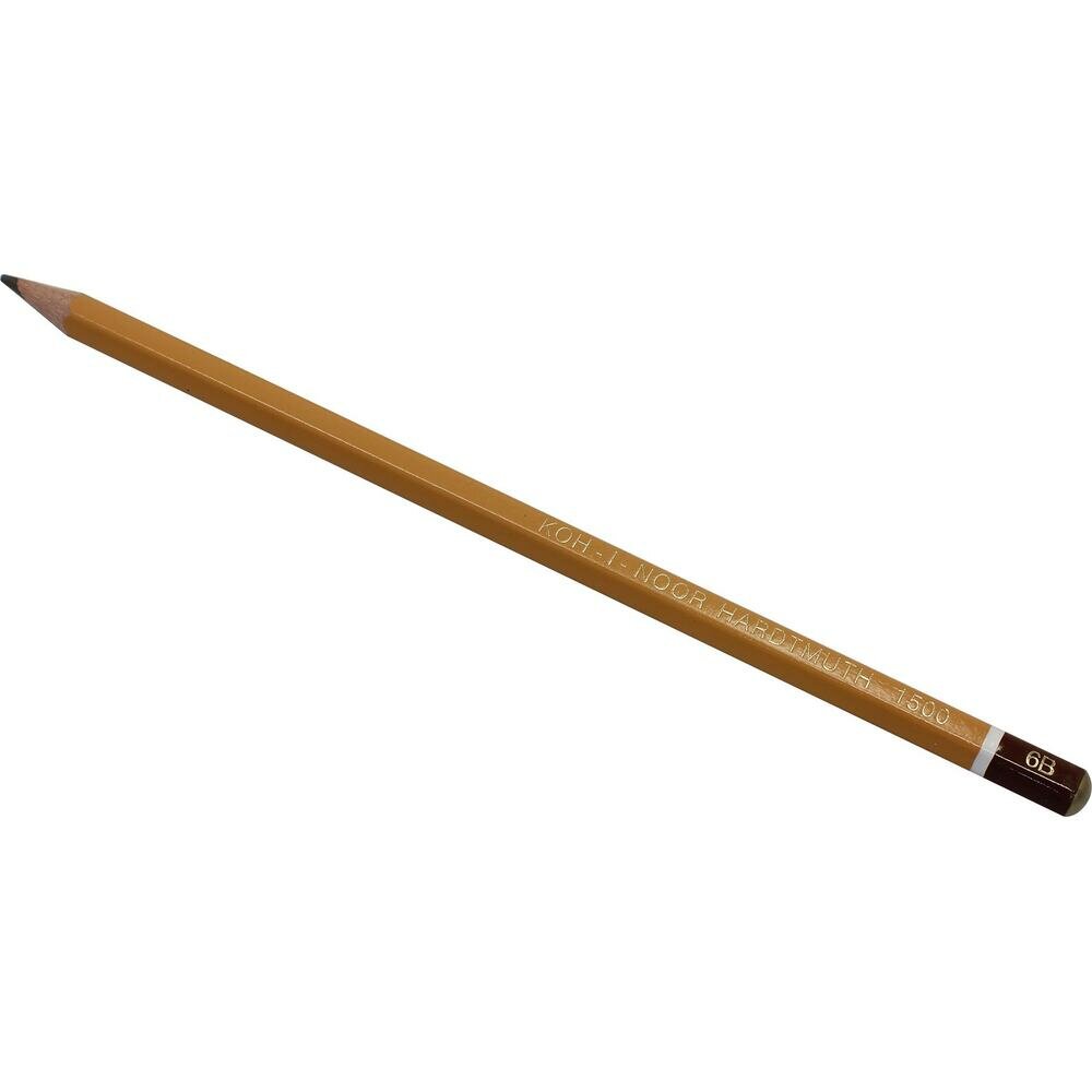 Карандаш чернографитный KOH-I-NOOR 1500, 1 шт., 6B, без резинки, корпус желтый, заточенный, 150006B01170RU