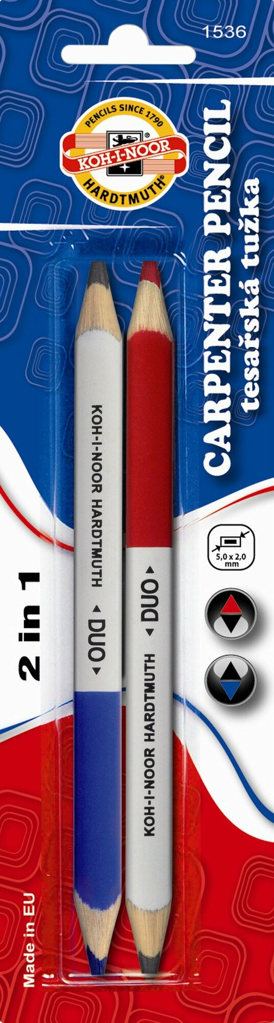 Карандаш столярный чернографитный 1536 DUO 2B, двусторонний, сине-красный, 2 штуки. в блистере