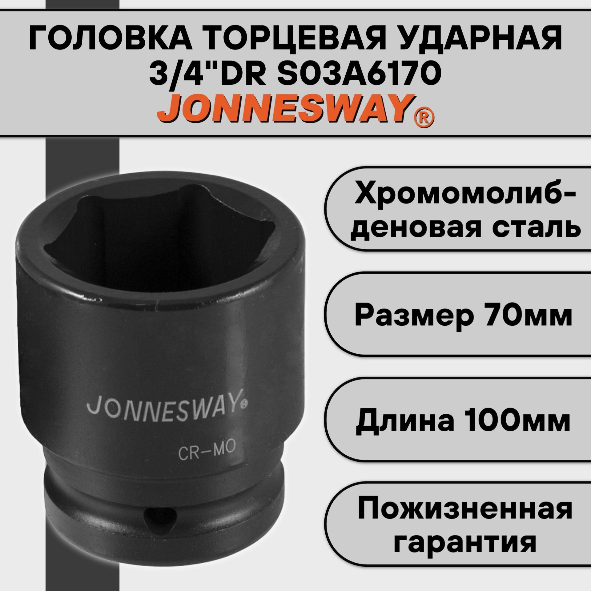 Головка Торцевая Ударная 3/4"Dr, 70 Мм S03a6170 Jonnesway арт. S03A6170