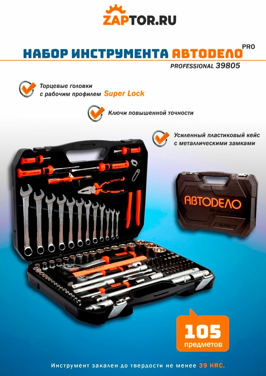 Набор Инструмента "Автодело" (Professional) 105 Предметов (1/4"+1/2") (Головки Super Lock) АвтоDело арт. 39805