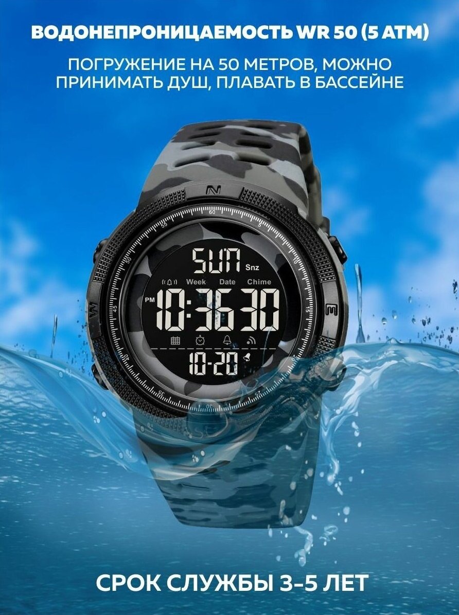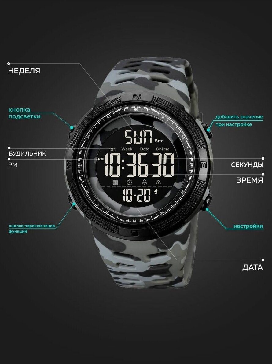 СохранитьТактические военные наручные часы Skmei 2070 Черный Дисплей Серый Камуфляж интересное: