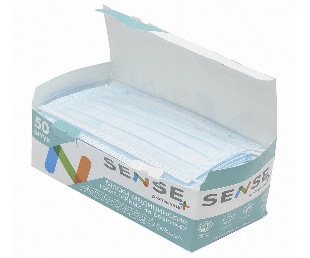 Маска медицинская SENSE Professional розовыя, 50шт.