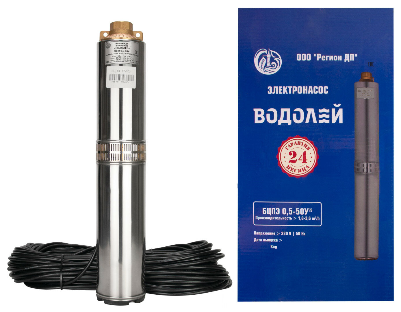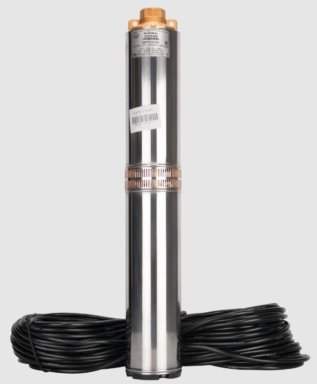 | Подробная комплектация | насос (без обратного клапана) с кабелем длиной 63 метра, конденсаторный блок (установлен на кабеле), инструкция и гарантийный талон |