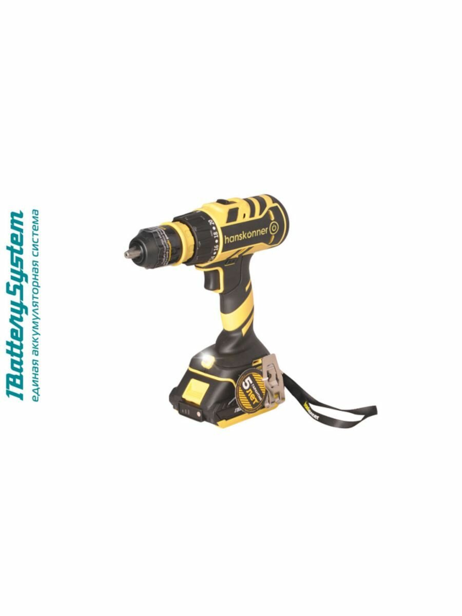 Аккумуляторный шуруповерт Hanskonner 1BatterySystem HCD18165BLI