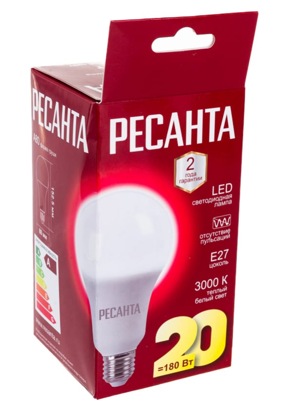 Лампа светодиодная Ресанта LL-R-A80-20W-230-6K-E27