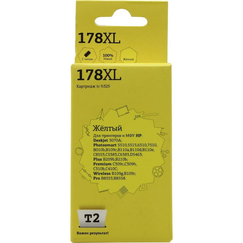 T2 Расходные материалы CB325HE Картридж 178XL для HP Deskjet 3070A Photosmart 6510 7510 B110 C8583, жёлтый, С чипом, 750 стр.