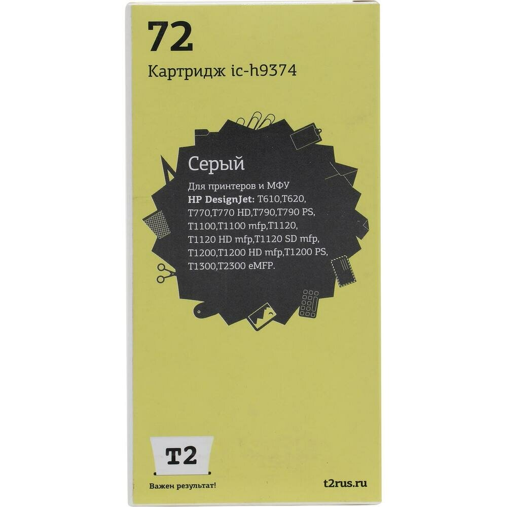 IC-H9374 Картридж T2 № 72 для HP Designjet T610/T620/T770/T770 HD/T790/T790 PS/T1100/T1100 mfp/T1120/T1120 HD mfp/T1120 SD mfp/T1200/T1200 HD mfp/T1200 PS/T1300/T2300 eMFP, серый