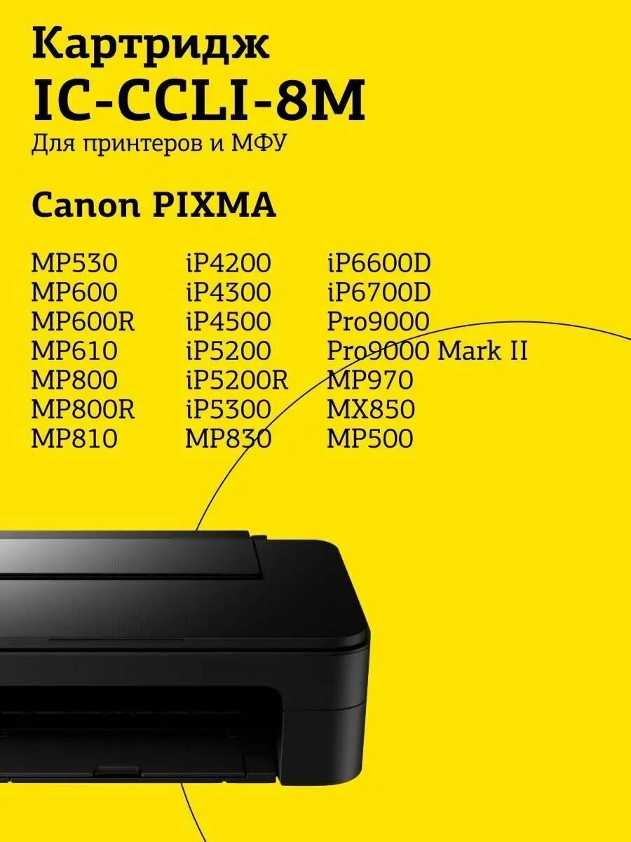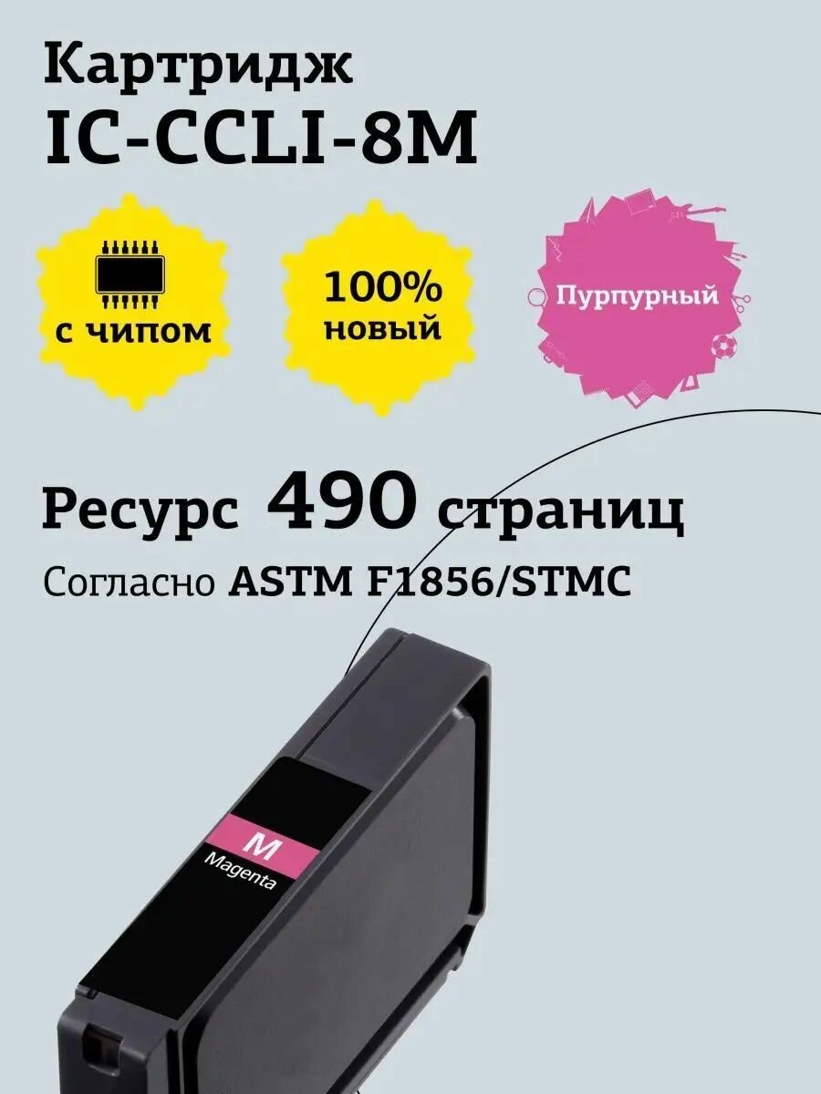IC-CCLI-8M Картридж для Canon PIXMA iP4200, 4300, 5200, Pro9000, MP500, 600, пурпурный, с чипом