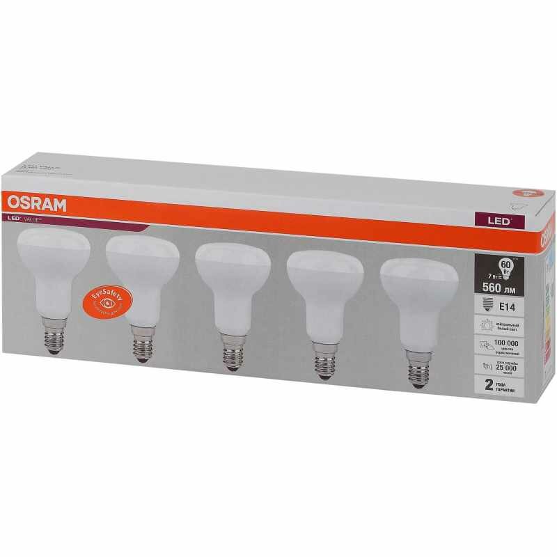Купить Лампочка светодиодная Е14 OSRAM LED Value R, 560лм, 7Вт, 4000К (нейтральный белый свет), упаковка 5 шт.