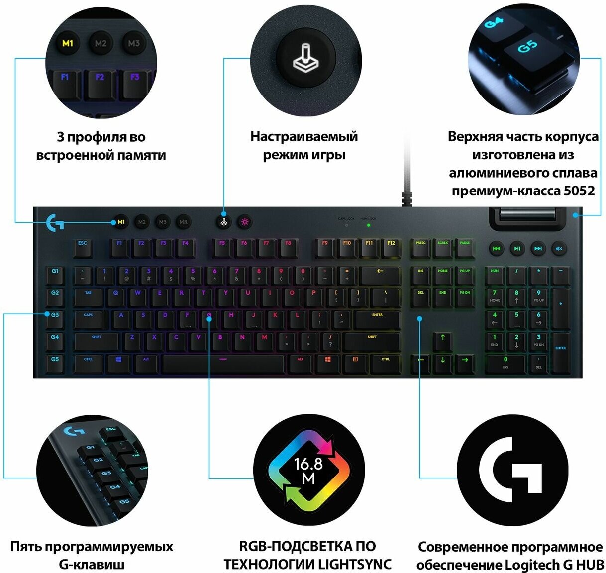СохранитьКлавиатура Logitech G G815 LIGHTSYNC RGB GL Linear, черный интересное: