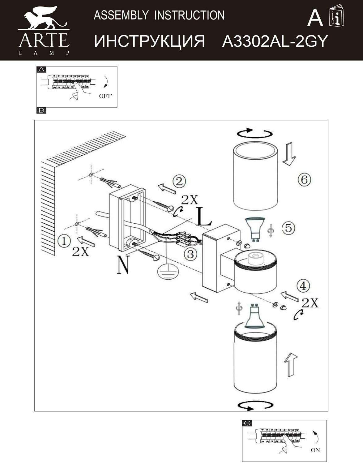 ARTE LAMP Светильник настенный Arte Lamp A3302AL-2GY