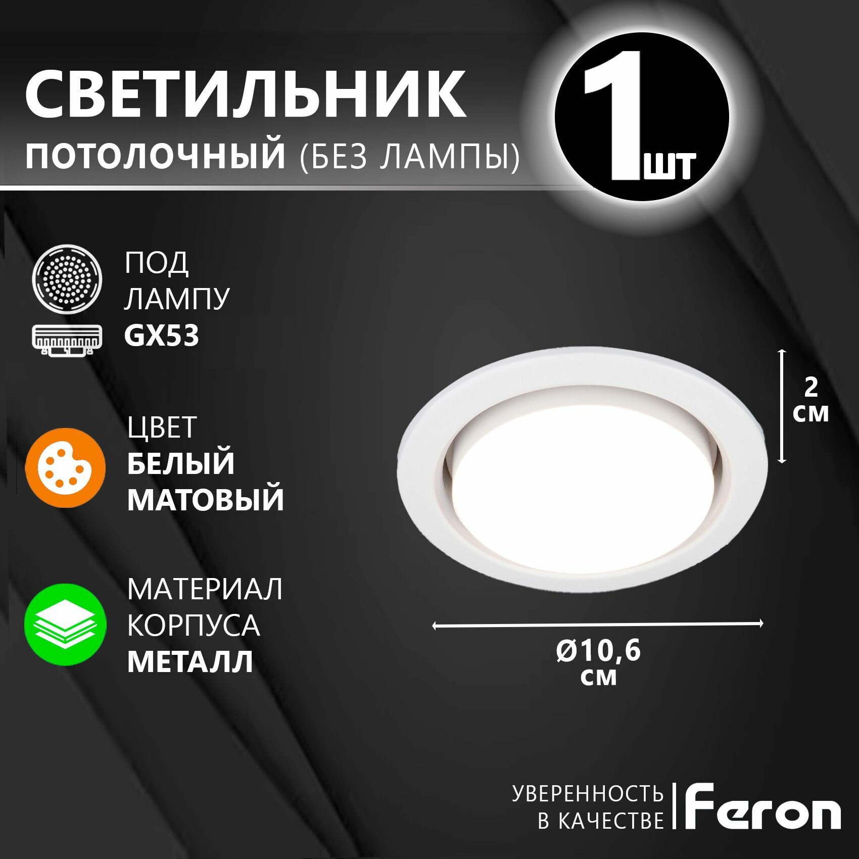 СохранитьСветильник потолочный встраиваемый, точечный под сменяемую лампу GX53, FERON DL53, белый матовый интересное: