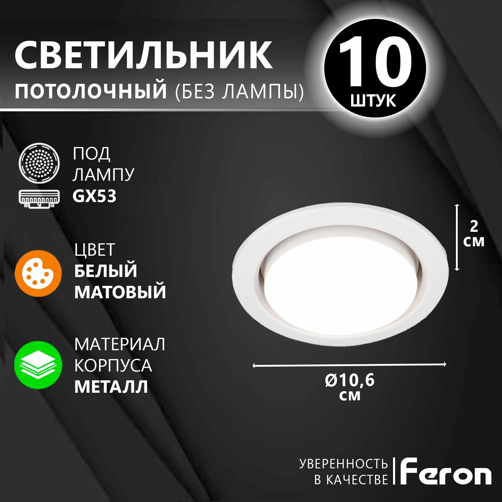 Купить Светильник потолочный встраиваемый, точечный под сменяемую лампу GX53, FERON DL53, белый матовый, 10 шт