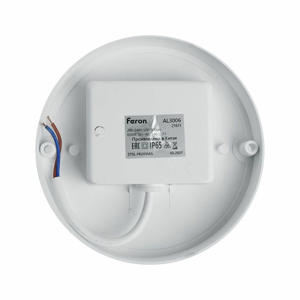 Светильник светодиод, Feron, AL3006, 12 Вт, 4000 К, 960 Лм, IP65, пылевлагостойкий, белый свет, плас