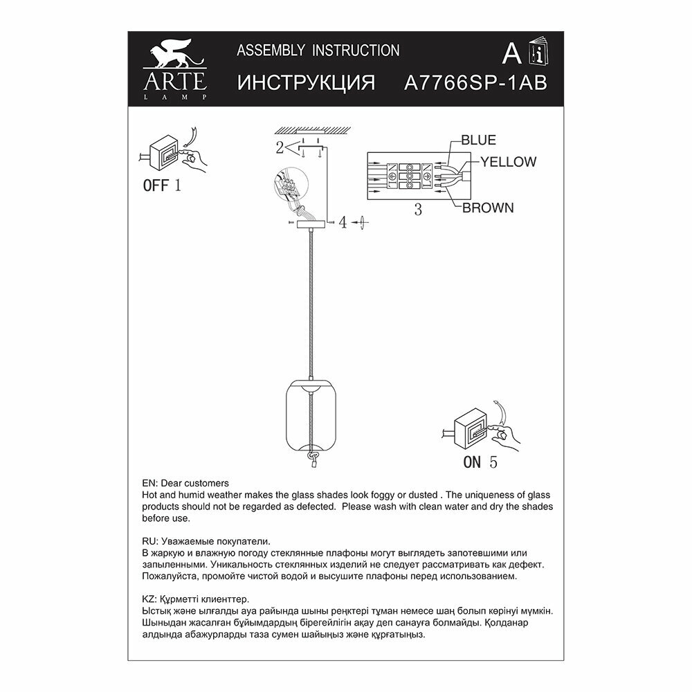 ARTE Lamp #ARTE LAMP A7766SP-1AB светильник подвесной