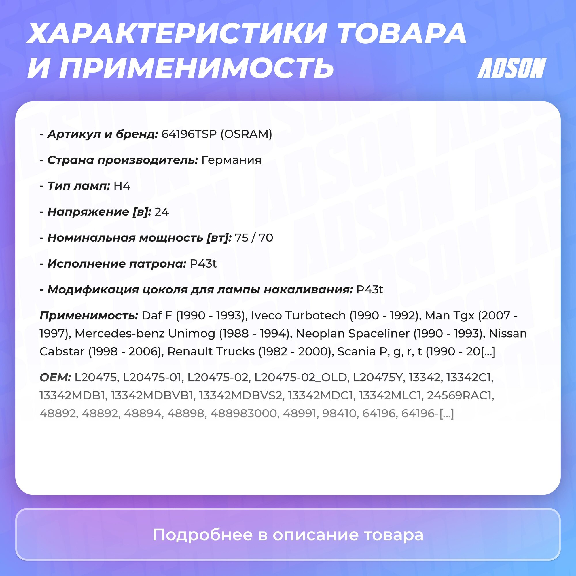 Лампа h4 24v 75/70w truckstar pro +120% Osram 64196TSP H4 Daf 45. Daf 55. Daf 65. Daf 65 Cf. Daf 75. Daf 75 Cf. Daf 85.