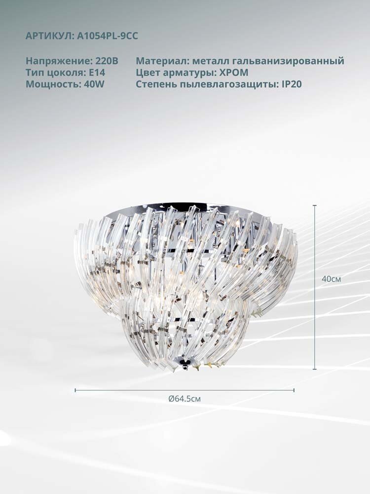 СохранитьПотолочная люстра Arte Lamp Ella A1054PL-9CC, E14, кол-во ламп:9шт., Хром интересное: