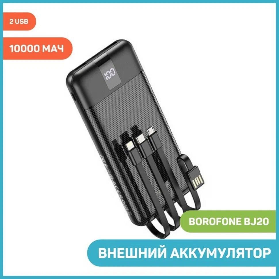Внешний аккумулятор Borofone BJ20 (встроенный кабель Lightning/MicroUSB/Type-C/USB Type-A) (10000 мАч) черный