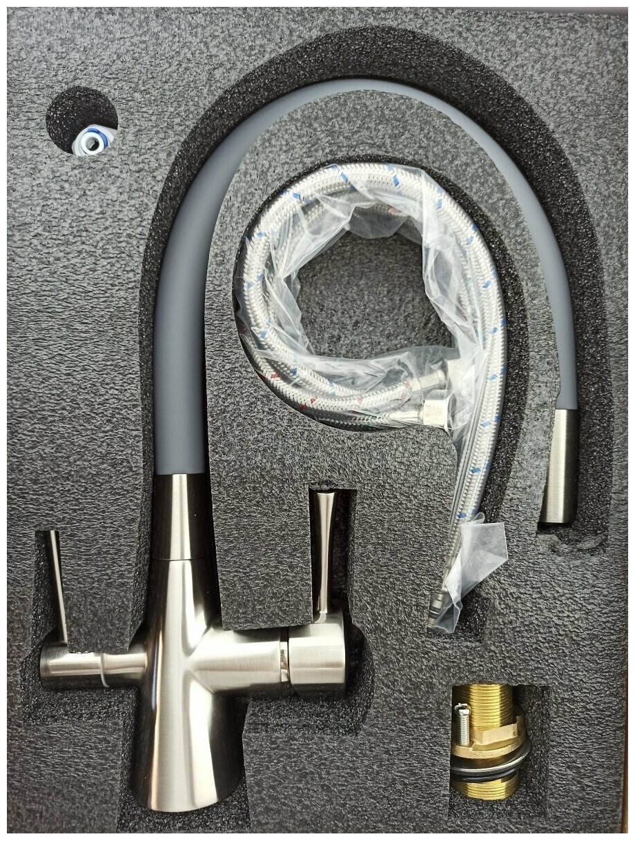 Купить Латун. смеситель под фильтр с гиб. изливом, корпус смесителя сатин, излив серый Oute T60003BL-5