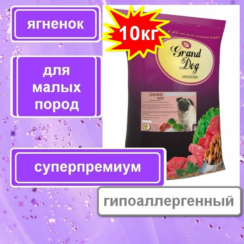 Гранд Дог, 10кг, Sensitiv mini с ягнёнком и рисом гипоаллергенный корм для взрослых собак мелких пород