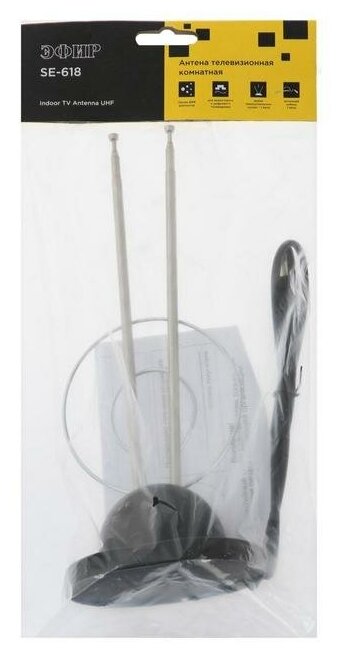 Антенна "Эфир" SE-618, комнатная, пассивная, 5 дБи, DVB-T, DVB-T2, цифровая 2293081 интересное: