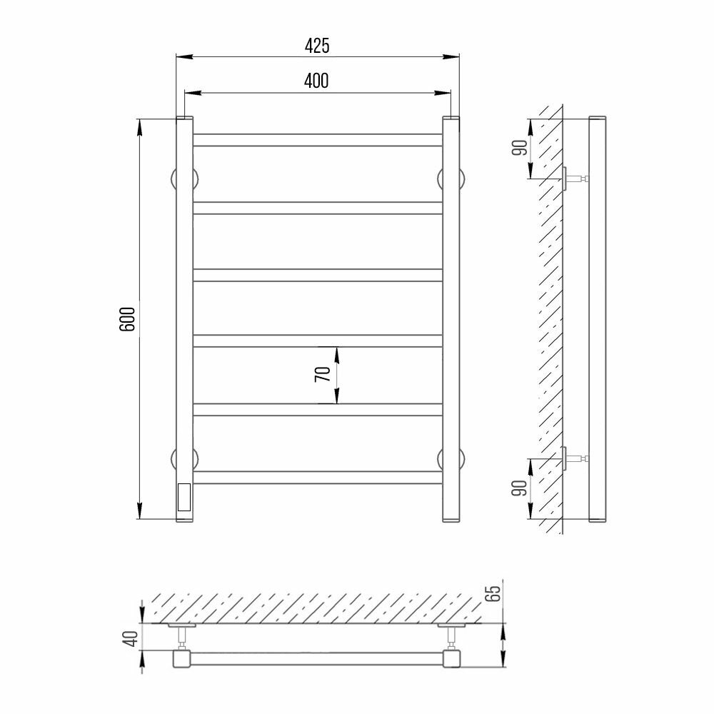 Полотенцесушитель Электрический Тругор Пэк сп 5 П 60х50 черный ВГП