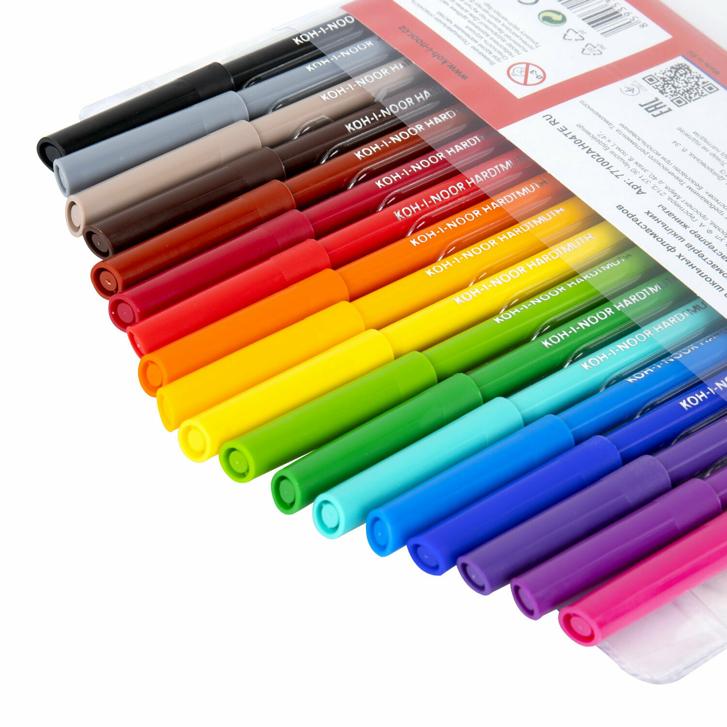 Фломастеры KOH-I-NOOR 12 цветов, смываемые, трехгранные, пластиковая упаковка (771002AB04TERU)