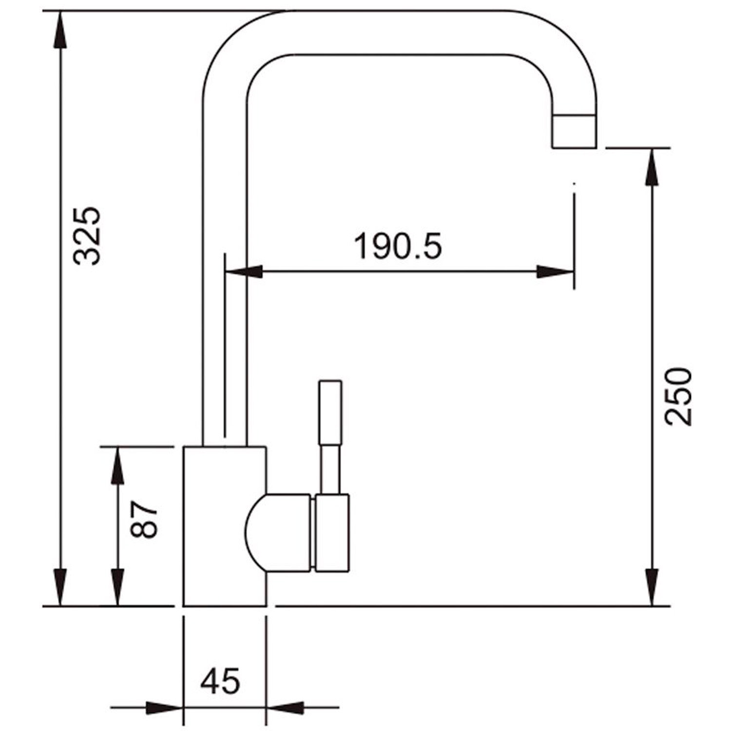 | Длина излива | 190 мм |