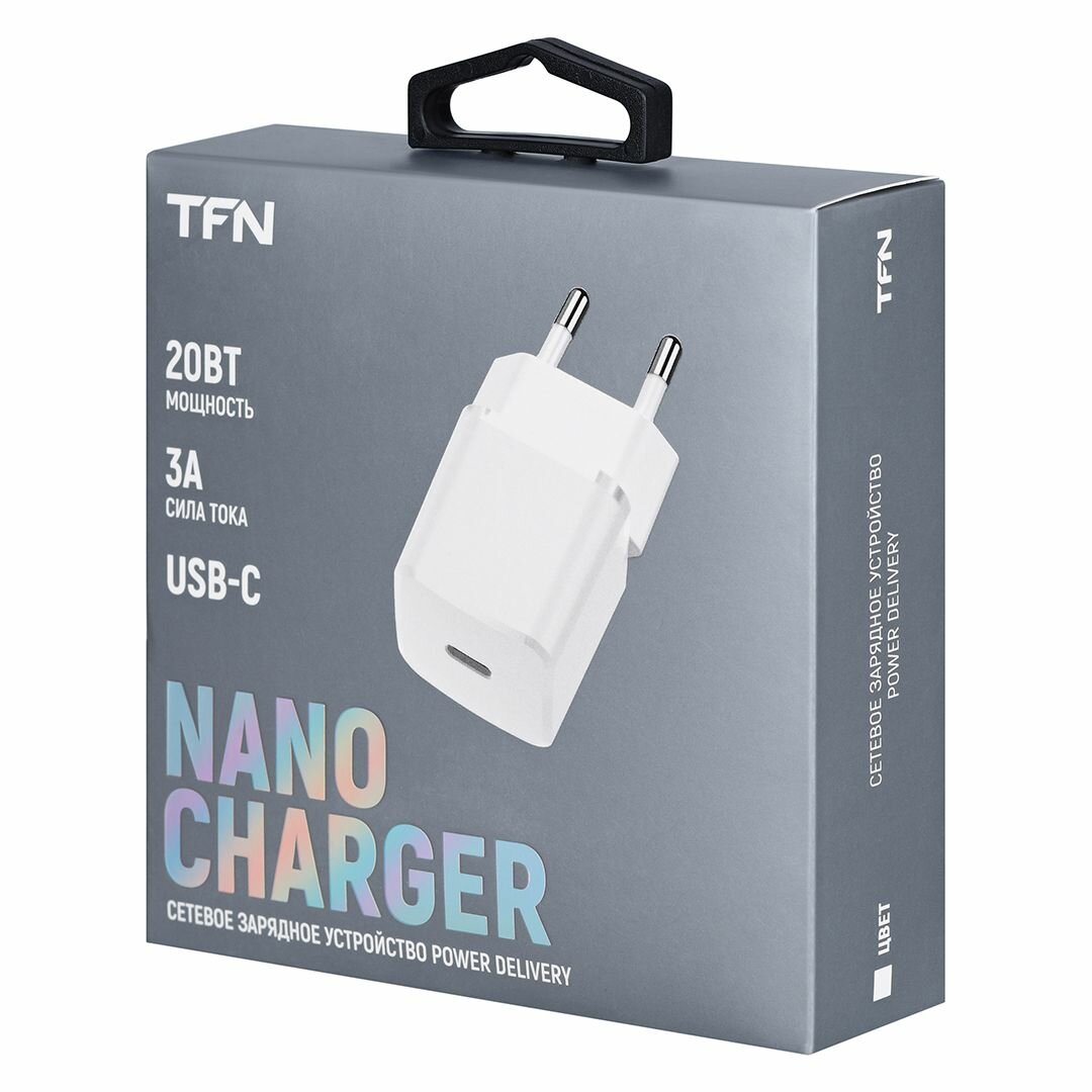 Сетевое зарядное устройство TFN nano TypeC PD 20W white без кабеля зарядка для смартфона зарядка на андроид