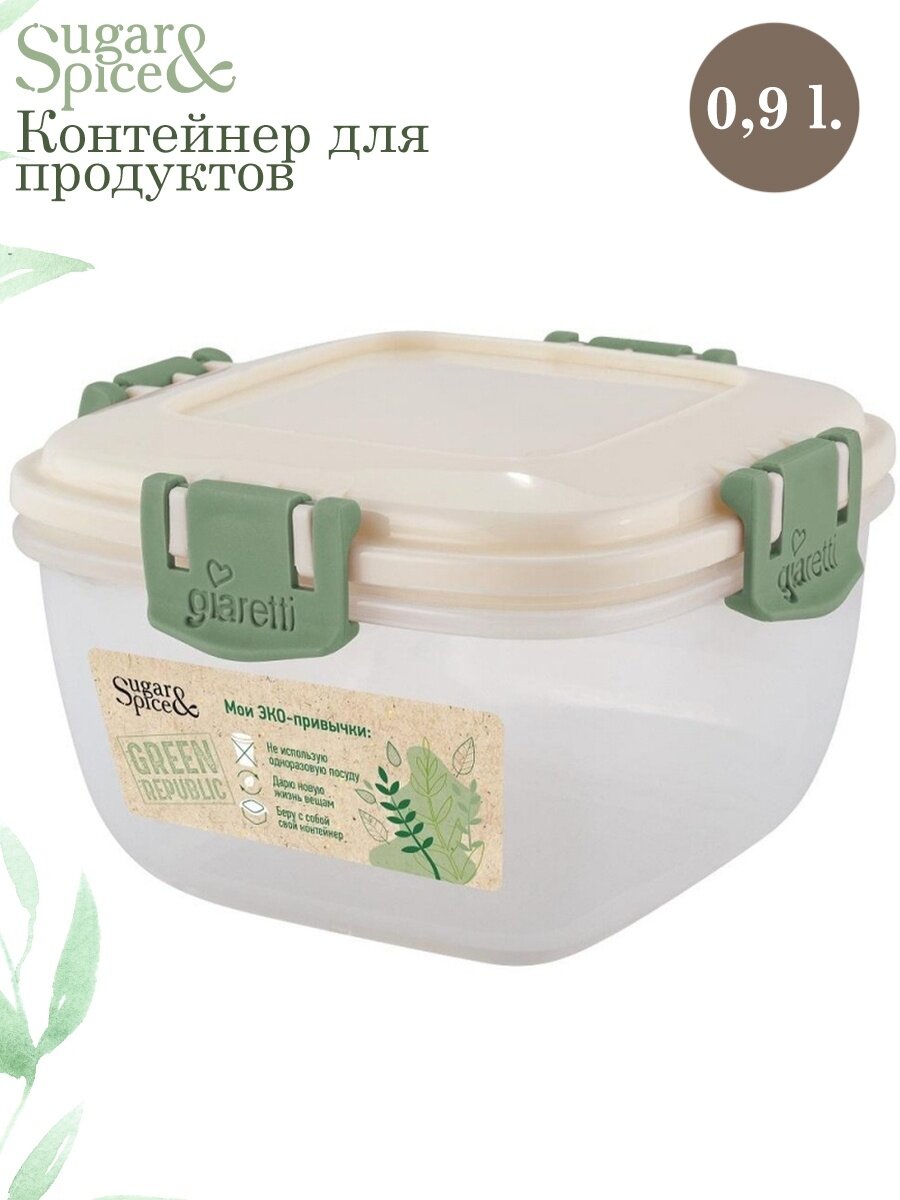 Контейнер для продуктов SUGAR&SPICEI Green Republic 0,7л герметичный квадрат. лен