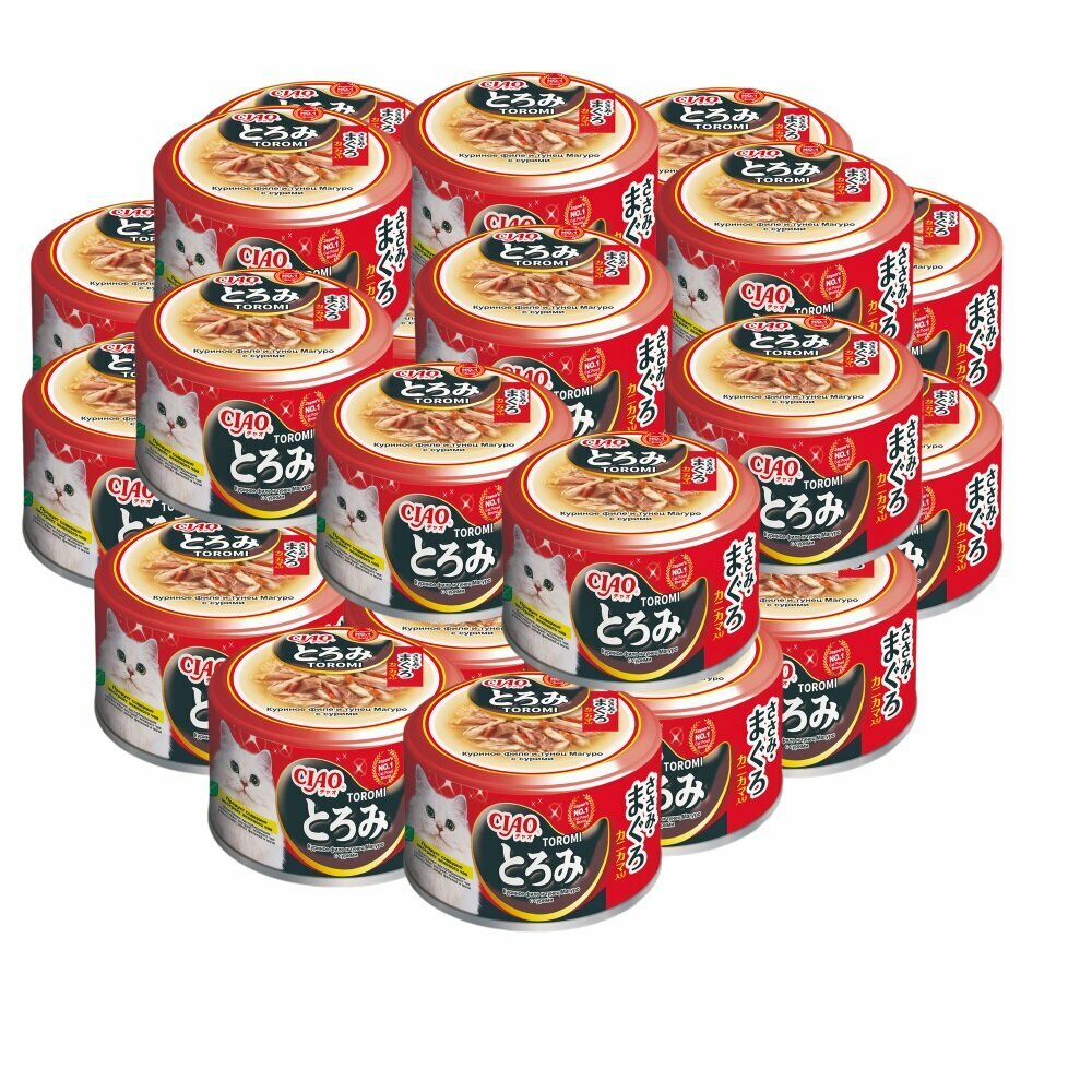 INABA Ciao Toromi 80 г консервы для кошек куриное филе и тунец магуро с добавлением сурими в бульоне 24 шт