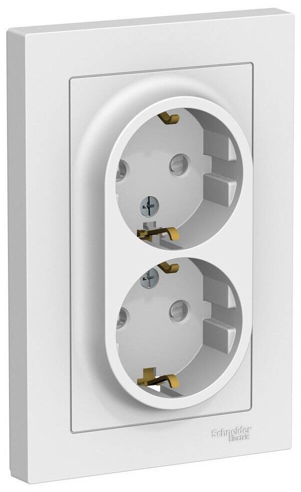 Двойная розетка Schneider Electric Атлас Дизайн с заземлением со шторками с рамкой белая