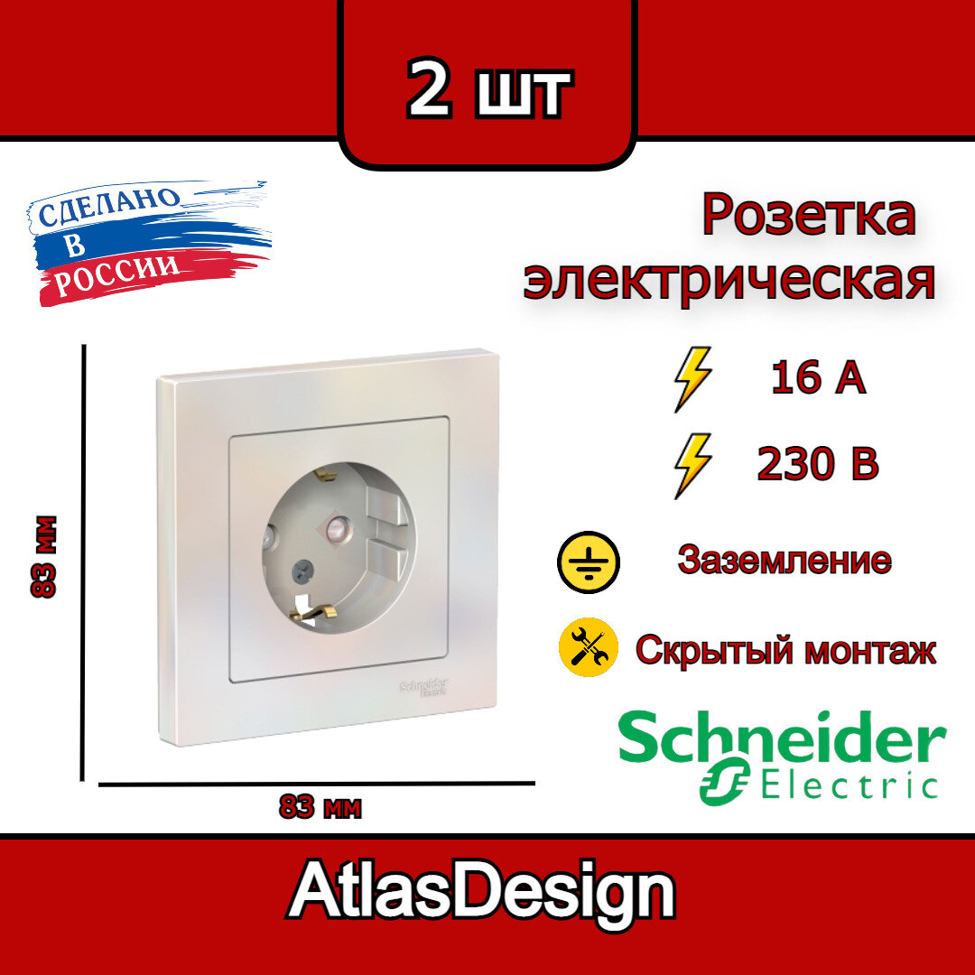 СохранитьРозетка с заземлением, со шторками, в сборе, жемчуг Schneider Electric AtlasDesign (комплект 2шт) интересное: