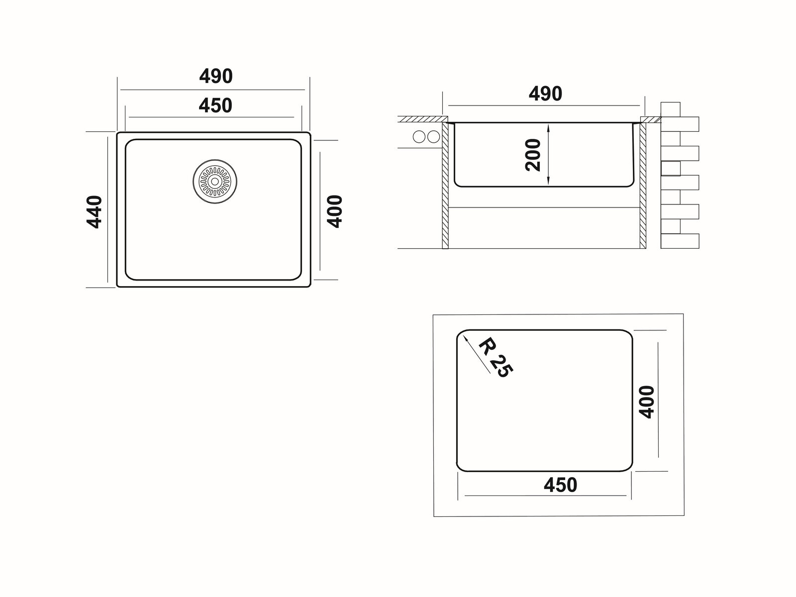 Мойка под столешницу Ukinox Loft 490х440 браширов. нерж.сталь 1мм, слив 3 1/2, LOB450.400 -GT10P интересное: