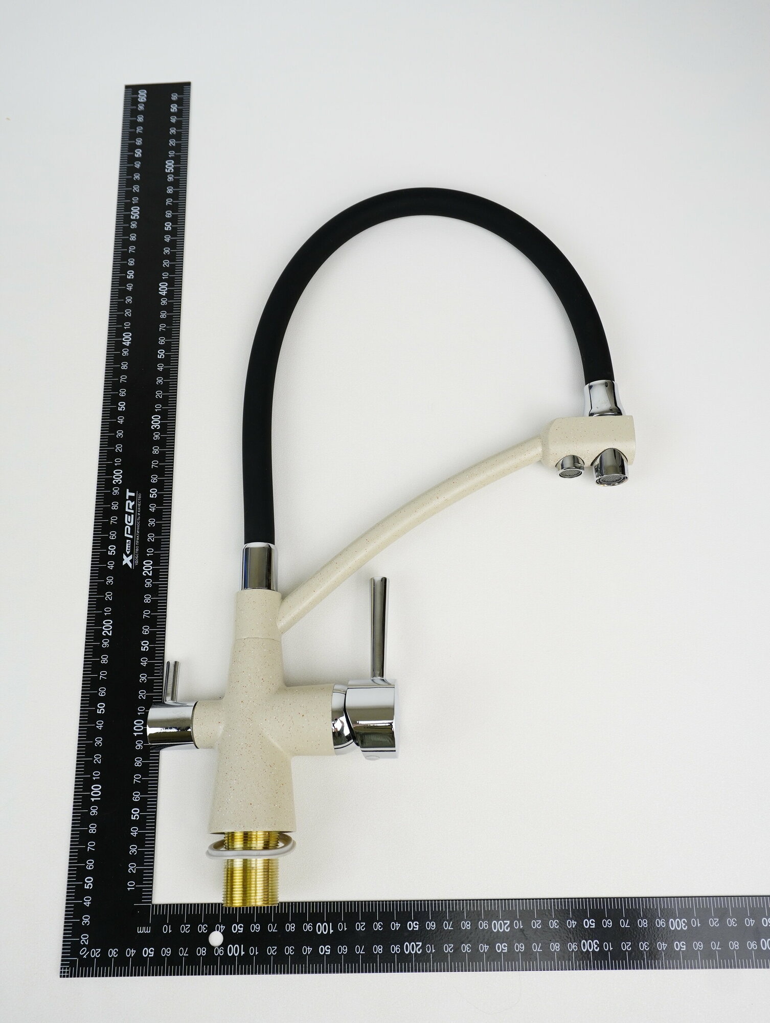 Смеситель на кухню Potato P4077-18 с краном для фильтрованной воды, картридж 35 мм, слоновая кость, крепление гайка