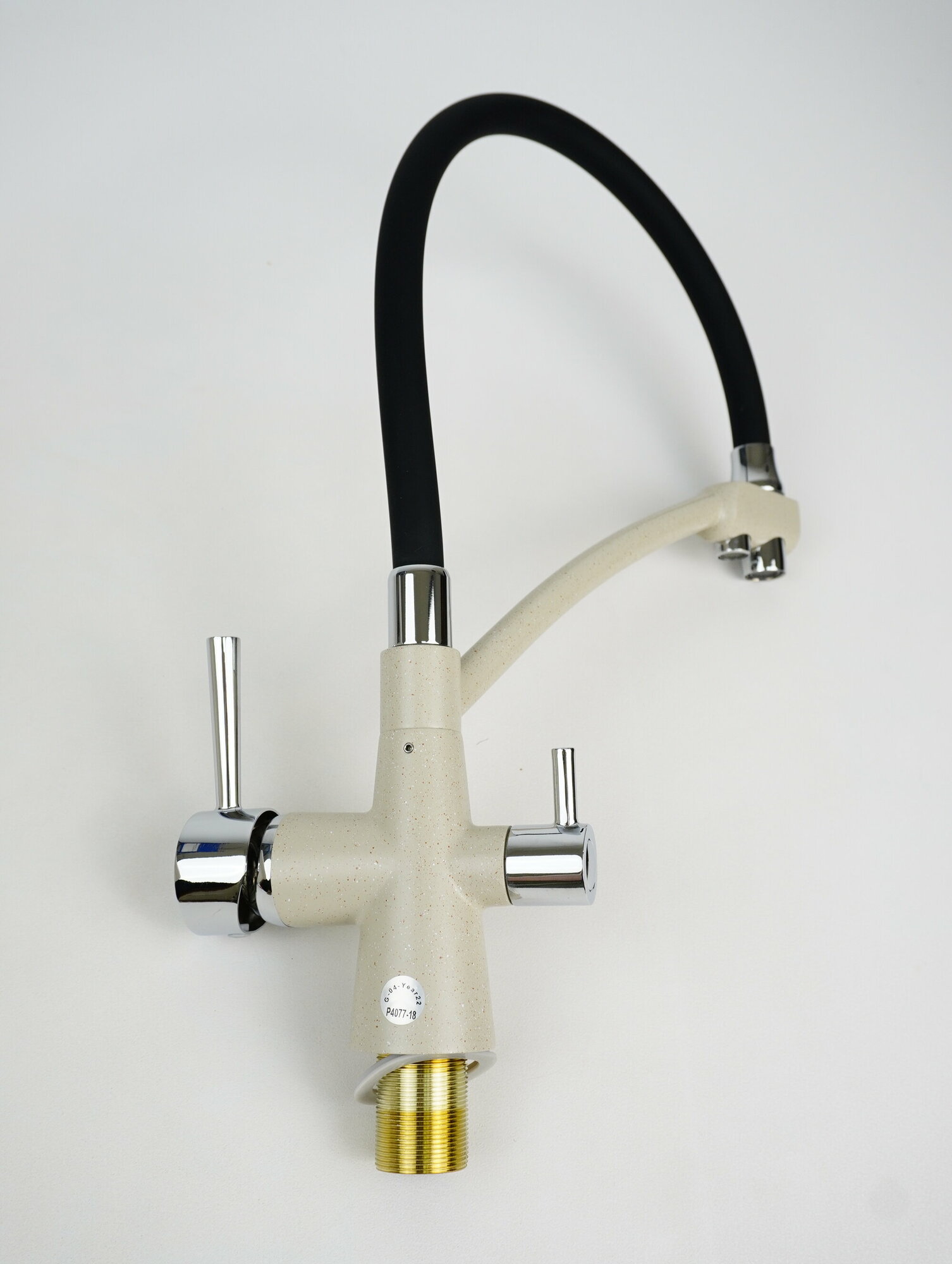 Смеситель на кухню Potato P4077-8 с краном для фильтрованной воды, картридж 35 мм, бежевый, крепление гайка
