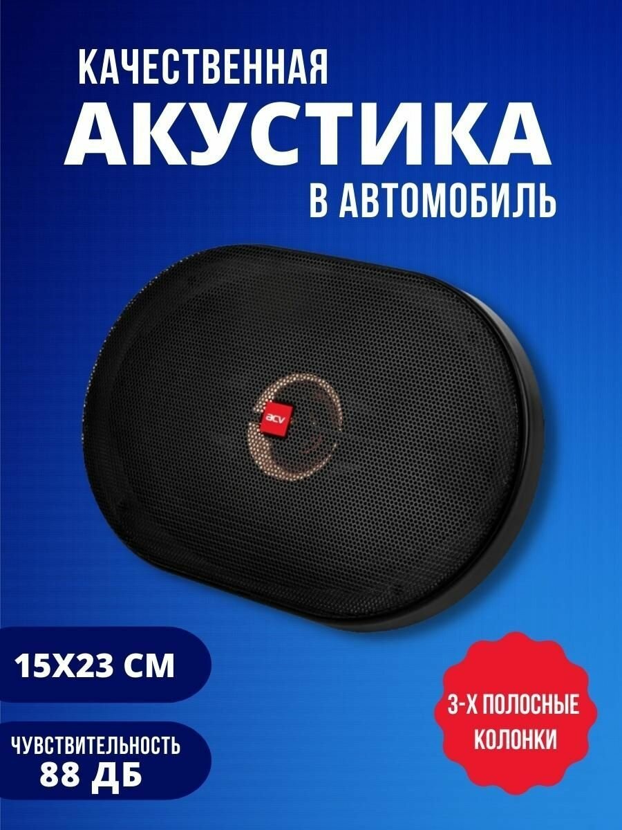 Купить Колонки автомобильные ACV PB-693G 240Вт 88дБ 4Ом 16x23см (6x9дюйм) (ком.:2кол.) коаксиальные трехполосные