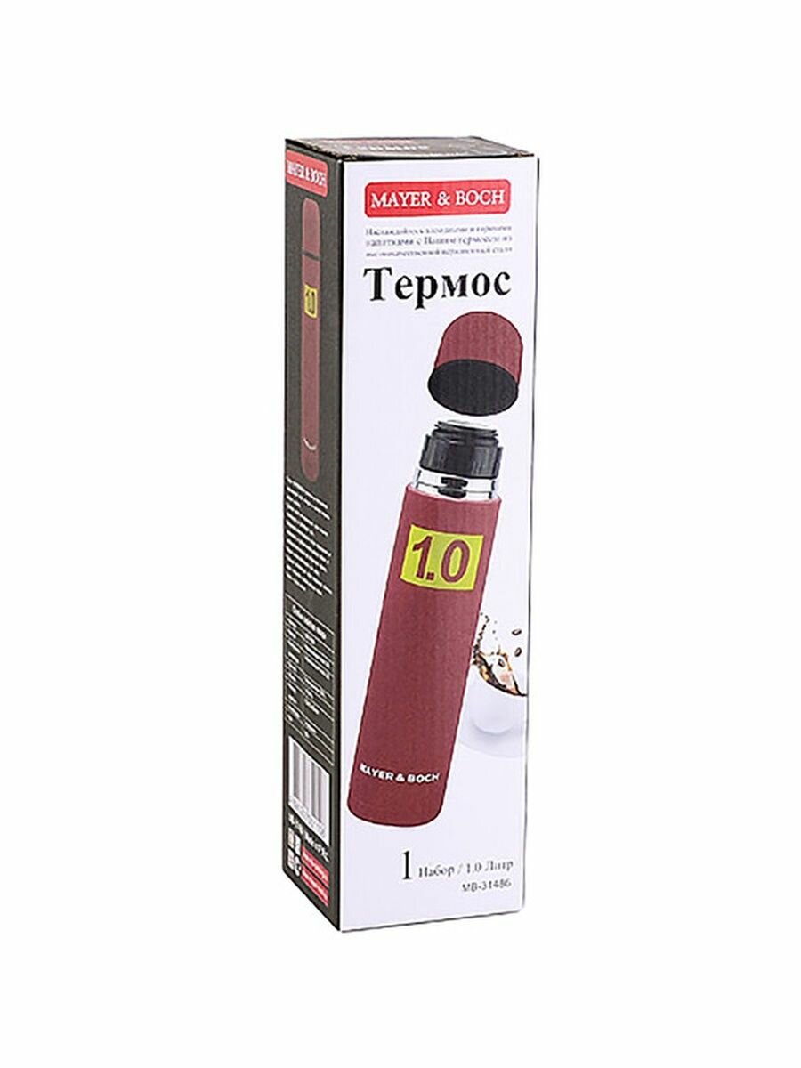 Термос 1,0 л. MAYER&BOCH из нержавеющей стали, бордовый