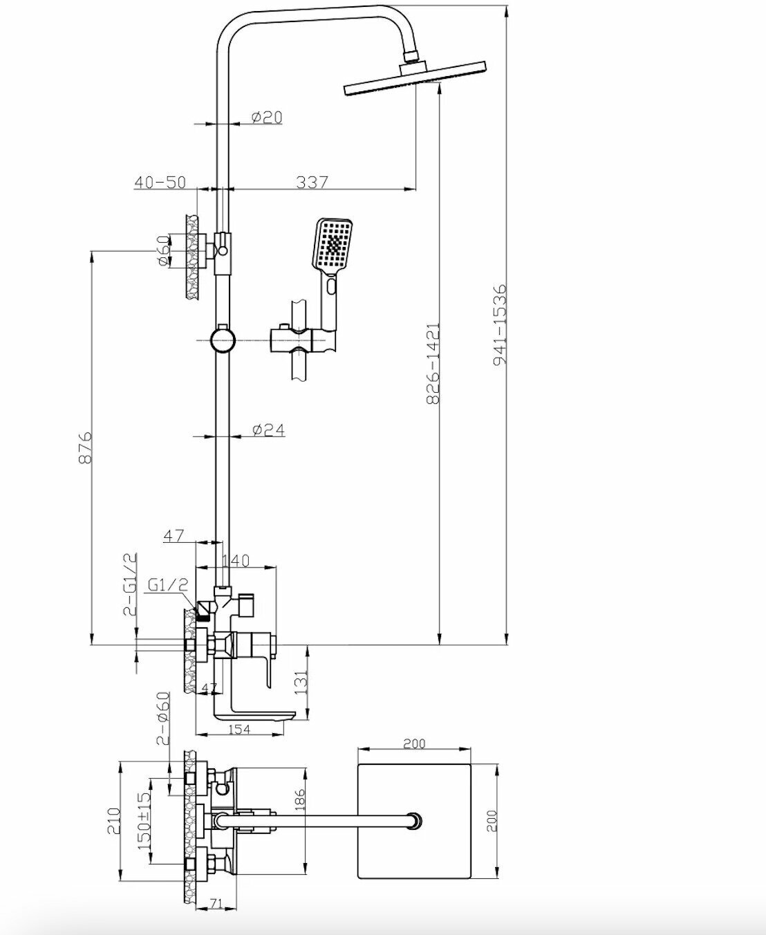 Душевая стойка Rossinka RS50 с термостатом (RS50-46)