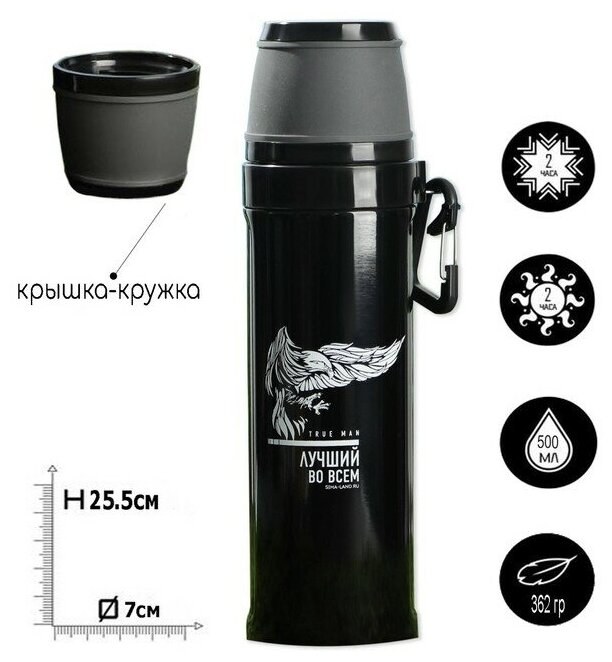 Термос с карабином «Лучший во всем», 500 мл, сохраняет тепло 14 ч (комплект из 5 шт) интересное:
